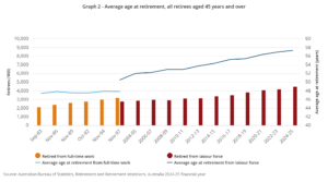 Graph 2 – Average age at retirement, all retirees aged 45 years and over